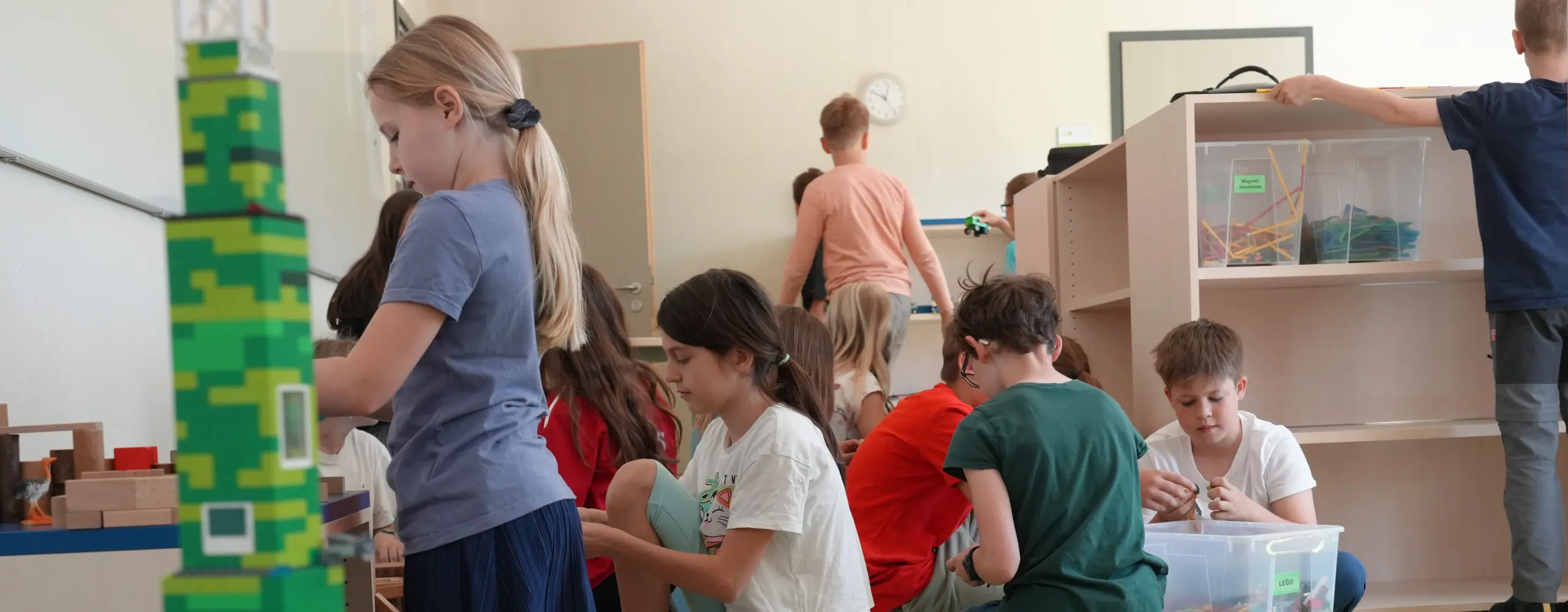 Unser teiloffenes Konzept bietet den Kindern die Freiheit, ihre Zeit nach eigenen Interessen zu gestalten und fördert gleichzeitig einen verantwortungsvollen Umgang mit Selbstbestimmung. Sie können aus einer Vielzahl von Aktivitäten und Ganztagesangeboten wählen, die ihre individuellen Talente und Interessen unterstützen. Gleichzeitig sorgen feste Gruppenzeiten für Struktur und Zusammenhalt im Tagesablauf.